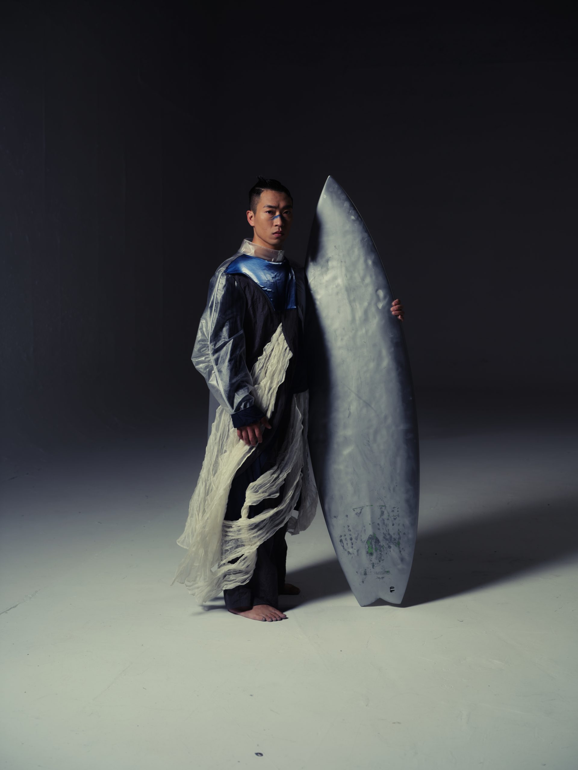 During the development process, 3D dynamic scanners were used to capture the joint movements of the Tai Chi practitioners. A unique approach was adopted to formulate and transform the documented Tai Chi motion into geometric origami structures, combining Eastern garment patterns and Western three-dimensional cutting techniques. The pattern analysis also includes the motion of each sport, creating one-of-the-kind garments silhouette to match the dynamics of the manoeuvre.