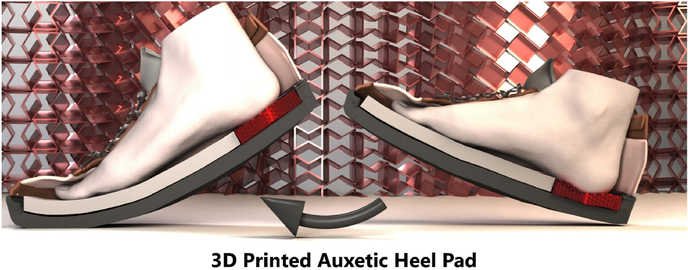 More than 422 million people worldwide suffered from diabetes mellitus (DM) in 2021. Diabetic foot is one the most critical complications resultant of DM. Foot ulceration and infection are frequently arisen, which are associated with changes in the mechanical properties of the plantar soft tissues, peripheral arterial disease, and sensory neuropathy. Diabetic insoles are currently the mainstay in reducing the risk of foot ulcers by reducing the magnitude of the pressure on the plantar Here, we propose a novel pressure relieving heel pad based on a circular auxetic re-entrant honeycomb structure by using three-dimensional (3D) printing technology to minimize the pressure on the heel, thus reducing the occurrence of foot ulcers. Finite element models (FEMs) are developed to evaluate the structural changes of the developed circular auxetic structure upon exertion of compressive forces. Moreover, the effects of the internal angle of the re-entrant structure on the peak contact force and the mean pressure acting on the heel as well as the contact area between the heel and the pads are investigated through a finite element analysis (FEA). Based on the result from the validated FEMs, the proposed heel pad with an auxetic structure demonstrates a distinct reduction in the peak contact force (∼10%) and the mean pressure (∼14%) in comparison to a conventional diabetic insole (PU foam). The characterized result of the designed circular auxetic structure not only provides new insights into diabetic foot protection, but also the design and development of various impact resistance products.