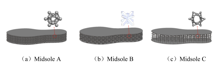 In the dynamic interaction between the runner and the ground, the running shoe is the only medium that bears the impact force of body weight and plays a crucial role in athletic performance. Traditional designs do not adequately consider the different shapes of the foot, which often leads to discomfort and aggravation of foot disorders. This study presents an innovative approach to running shoe midsole design using 3D-printed chiral negative poisson’s ratio (NPR) structures to enhance shock absorption and support, thereby optimizing biome chanical performance and comfort. Using computer-aided design (CAD) and computer-aided engineering (CAE), the biomechanical effects of different midsole structures has been explored through finite element analysis (FEA). The study focuses on optimizing the cushioning, propulsion and stability of the midsole to mitigate the impact on the ankle and knee. Static compression and dynamic impact simulations were utilized to comprehensively select optimized design of midsole structure and the selected structures was 3D printed to validate the biomechanical benefits in a wear trial. The results of the study highlight the superior performance of chiral NPR structures in reducing forefoot stress during standing and movement and advance the design and functionality of 3D printed materials in running shoes.
