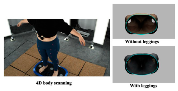 By coupling a Boussinesq-based elastic model with a motion-corrected, image-recognition anthropometric pipeline, the study predicts and measures soft-tissue deformation beneath five compression leggings, achieving ≤ 2.36 mm deviation from scanned data under both static and dynamic conditions and giving designers an accurate tool to optimize garment fit and support.