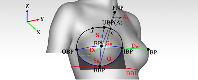 In order to analyze the breast shapes and provide basis for the development of bra sizing system and garment pattern-making, this study proposed a method to classify breast shapes from breast local features and overall shape based on the detailed breast morphological parameters. A definition for the breast boundary was deter mined to establish a measuring standard for the feature points, and then 18 related parameters were obtained based on the 3D point-cloud data of 158 unmarried young female college students aged between 18 and 25. Six shape parameters were selected for cluster analysis. In addition, the gathering ratio was induced to classify the breast shapes of subjects into nine categories that are FC-Middle, FC-Gathering, FC-Separating, UO-Middle, UO- Gathering, UO-Separating, PO-Middle, PO-Gathering and PO-Separating. Through verification, it shows that the error range of 95.71% UBP and 91.43% OBP are all less than 1.5 cm, while the error range of 81.43% UBP and 74.29% OBP are less than 1 cm. The accuracy of the classified results via the proposed method is 97.33%. The classification of breast shapes of this study can provide a reference for young women to choose the correct size of bra.
