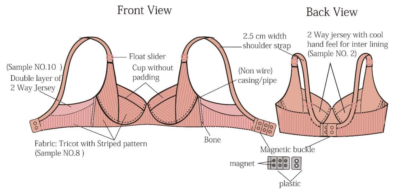 Much like the rest of the developed world, Hong Kong is an aging society, which means that the older population is increasing dramatically. In comparison to younger adults, older adults are more financially comfortable and tend to invest more in themselves. One of the groups of older adults who are also a unique group of consumers are older women, particularly in terms of bras. They have specific needs and preferences for bras in response to their aging and changes in their physical body as well as how they perceive comfort. As commonly known, bras have an essential role in improving the shape of the body by lifting and gathering the breasts. An appropriate bra can thus provide pleasure to mature women by ensuring comfort, function, and aesthetics at the same time. Joint flexibility and range of movement of the body and limbs also decrease with aging. However, most of the bra closures are located at the centre of the back of the bra. Due to reduced flexibility and movement of the upper limbs and fingers, most older women find it very difficult to reach behind themselves and hence face serious difficulties when securing bra closures with hook-and-eyes at the centre of the back of the bra. In addition to physiological issues, the aging process also has psychological effects on women, and they cope with these challenges through beauty interventions such as a bra to mask the outward signs of increasing age. Therefore, the market for golden agers in terms of bras still needs further development. That is, when older women try to find a bra that meets their many needs, the choices are quite limited. The goal of this research work is to develop comfortable bras that would meet the potential needs of older women and also establish new design criteria and design methods for age-friendly bras. In order to achieve this goal, a thorough scientific basis is established to understand the age-related changes of older women and their needs and requirements in relation to bra features, the practical use of bras, and the difficulties of donning a bra. To examine the age-related changes in terms of physical features, comparisons are conducted between a younger group of twenty-eight Chinese females between 19 and 33 years old with an older group of twenty-six Chinese females between 54 and 69 years old. Physical measurements of the subjects are both manually taken and determined by using a three-dimensional scanning method. Body measurements including height, weight, body mass index (BMI), slope of the shoulders and curvature of the back are taken to determine the physical well-being of the subjects and their level of obesity. Measurements are also taken of the breasts, including breast prominence, bust and underbust girths, the difference between the bust and underbust girths, distance from clavicle to the nipples, nipple to nipple distance and breast ptosis, to evaluate their bra size, breast position and breast shape. The results show that compared to the younger females, the older women in this group are more obese, have more sloping shoulders, a forward bending back, larger bust and underbust girths, and more sagging breasts. The physical measurements therefore act as a reference for the development of the bra prototypes in this study.