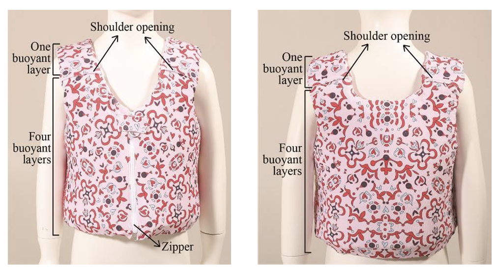 The use of children’s buoyant swimwear has become more common. However, its bulkiness and hardness restrict the wearer’s movement. For better fit, comfort and mobility, a knitted buoyant swimming vest is developed. It is compared with two market samples using subjective evaluation according to the Functional, Expressive and Aesthetic (FEA) Consumer Needs Model and laboratory tests of objective measurements. The results of a paired-sample t-test show that a tightly fitting buoyant swimming vest should be worn out of water, as the vest becomes a perfect fit in water. Tests on the knitted buoyant swimming vest demonstrate improved functionality and higher buoyancy than that of two market samples conforming to British Standard EN13138-1:2014. The results of repeated measures analysis of variance show an overall significant higher satisfaction level in the knitted buoyant swimming vest than two market samples in terms of fit, comfort and mobility. The results of this study are significant for both the textile industry and the fast-growing sportswear industry.