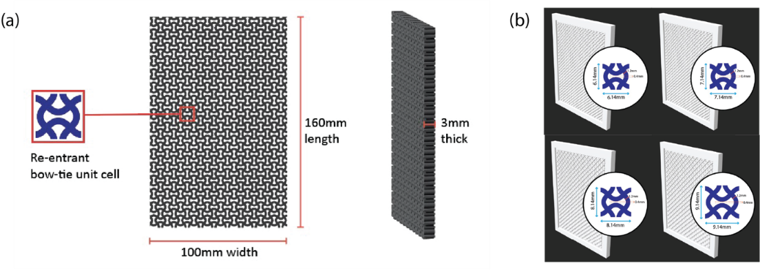 The deformation elasticity behaviour of re-entrant auxetic structures with a bow-tie shape, made of silicone elastomer, is systematically analysed for size accommodation and shape conformity, and compared with traditional polyurethane foam and spacer fabric used in bra pads. The results indicate that the auxetic structures exhibit desirable mechanical properties, including superior elasticity and stable deformation under tensile loading. Additionally, these structures facilitate 3D shape conformity to breast shapes, thereby improving overall bra fit.