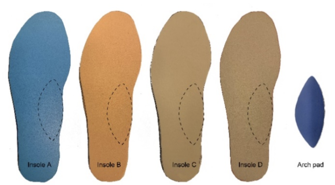 Repetitive high pressure on the plantar of the foot along with loss of protective sensation is one of the key factors that result in diabetic foot ulceration. Orthopedic insoles have been proven to significantly reduce the peak plantar pressure. It is anticipated that the offloading performance of insoles is mainly influenced by the properties of insole materials. Therefore, the objective of this study is to compare the immediate offloading performance of 3D insoles designed with 4 different types of insole materials during walking. The PORON® Medical 4708 insole has the best offloading performance for each foot region compared to the other insole materials. Compared to the barefoot condition, the peak pressure with the use of the PORON® Medical 4708 insole is reduced by 37% on the entire plantar surface, 40% at the medial rearfoot, 42% at the lateral rearfoot, 12% at the lateral midfoot, 19% at the 1st metatarsal head (MTH), 59% at the 2nd – 4th MTHs, 46% in the 5th MTH, 4% at the hallux, and 7% at the other toes. Softer insole materials have better offloading performance compared to the harder materials during walking.
