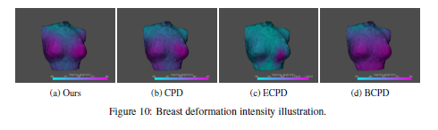 We propose an accurate approach to reveal such correspondence based on radial basis functions (RBFs) and a set of sparsely labelled landmarks, with a good post-alignment scheme. Two application cases are examined to illustrate its applicability: virtual anatomical landmark tracking and analysis of extent of deformation. Our approach significantly outperforms the two baselines adapted from previous studies in terms of calculation time, accuracy, and consistency. These results suggest that our approach can capture the dynamic deformation characteristics of the surface of the breast in a robust manner. The method also advances research in breast anthropometry, biomechanics, and ergonomics by enabling more accurate tracking of the surface deformation patterns and dynamic characteristics of the breasts.